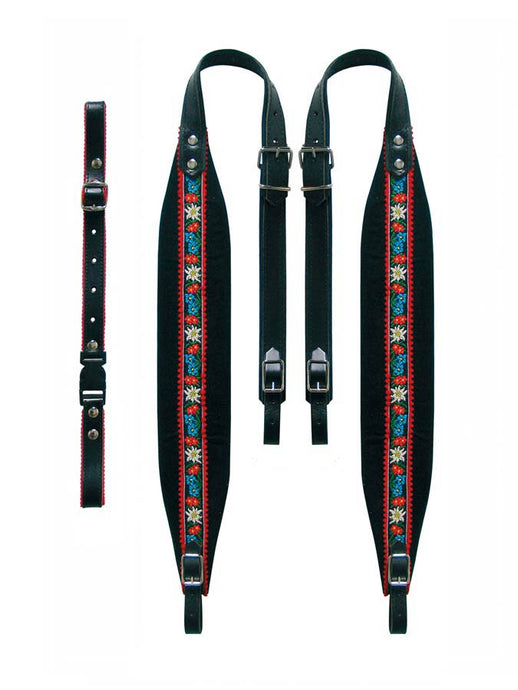 Accordion straps, 48-72 bas, tirol 82-87 x 6,0cm, backstr, ""tiroler"", leather & black velvet