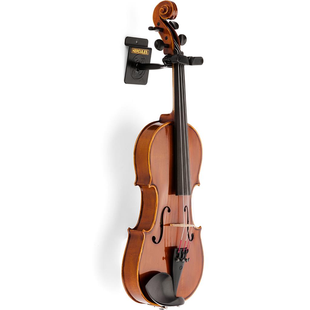 The HERCULES Violin/Viola Hanger DSP57SB utilizes the Auto Grip System (AGS) yoke and features a slat-wall base.