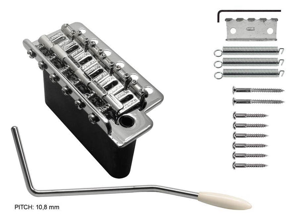 Tremolo, pitch 10,8mm, with screws, zinc block, chrome