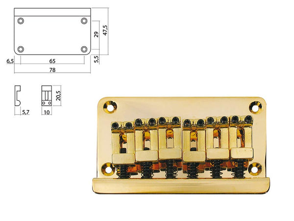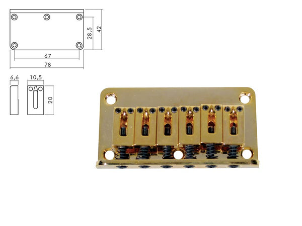 Bridge-tailpiece, Stallion, pitch 10,0mm, gold