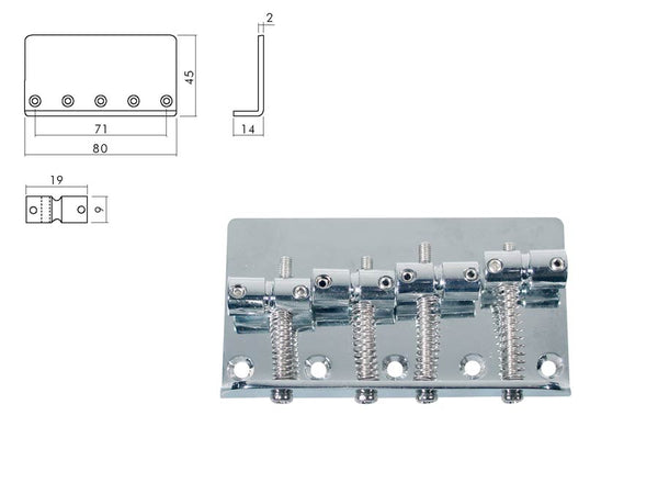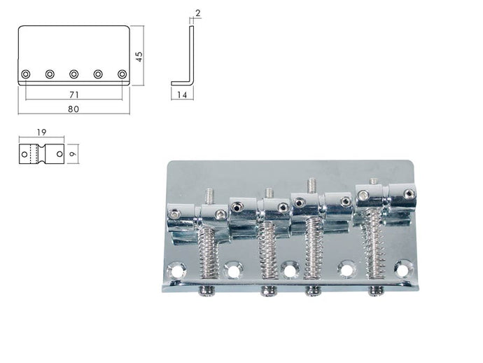 Bridge-tailpiece, Jocker/ Puncher bass, pitch 19mm, chrome