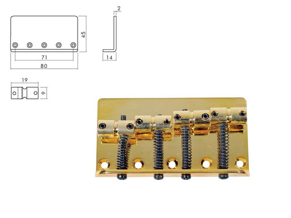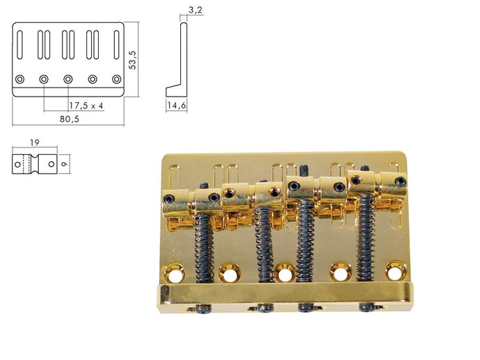 Bridge-tailpiece, Jocker/ Puncher bass, 5-string, pitch 16mm, gold