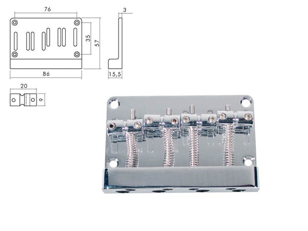 Bridge-tailpiece, Jocker/ Puncher bass, pitch 20mm, chrome