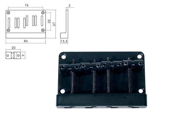 Bridge-tailpiece, Jocker/ Puncher bass, pitch 20mm, black
