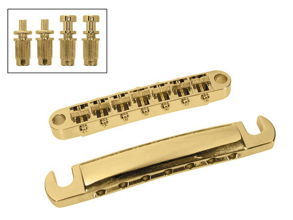 Bridge and tailpiece set, 7-string, with studs, goldplated