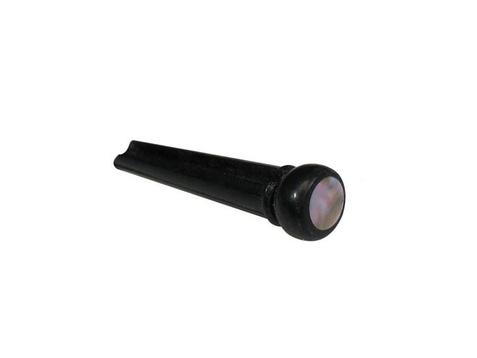 Bridge pins, plastic, 12-pack, black, 5mm pearloid dot