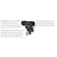 Details The clamp. The Berp clamp fits firmly onto the open end of the instrument’s receiver,with the mouthpiece removed. It’s designed to tighten around a round, hex, or convex-shaped opening. If a receiver has an oversized ring at the opening, it may be necessary to push the clamppast that before tightening down. For some receivers, you may also need to add blackelectrical tape to the inside of the clamp to help prevent slippage and ensure a secure fit. Most people prefer to line The Berp up parallel to the receiver at the “three o’clock” position. You may want to experiment with other positions to determine what’s best for you. Once The Berp is firmly attached, you can easily alternate between buzzing and playing your instrument by switching the mouthpiece. The resistance dial. The dial for the trumpet, horn, and cornet Berp should be positioned below the holes and pushed up to partially cover them to create the desired resistance. The dial on The Berp for trombones, euphoniums, and tubas should be positioned above the holes and lowered to create the desired resistance. Beginners usually have a better chance of getting a good buzz with slightly more resistance. Once a good buzz is achieved, resistance on The Berp should be dialledsimilarly to that of the instrument.