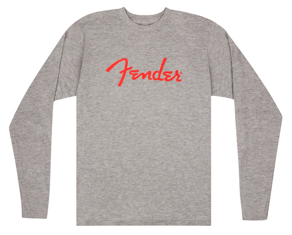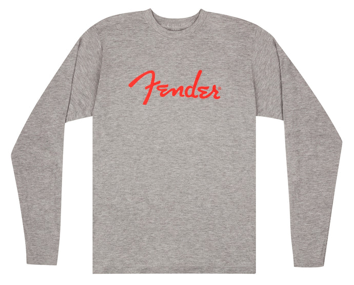 Fender Spaghetti Logo Long Sleeve T-Shirt, Heather Gray - M