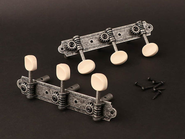 Machine heads for ukulele, nickel plated, set of 4 pcs, white buttons