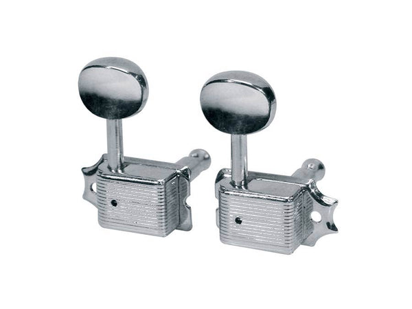 Machine heads for guitar, vintage F-style, 6x left, split shaft, chrome