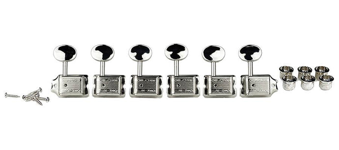 Machine heads for guitar, 3x left+3x right, vintage style, nickel