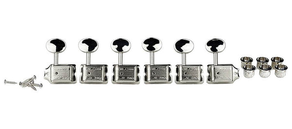Machine heads for guitar, 6x left, vintage style, metal buttons, chrome
