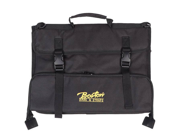 Music stand and desk music bag, with strap and accessory pocket, black