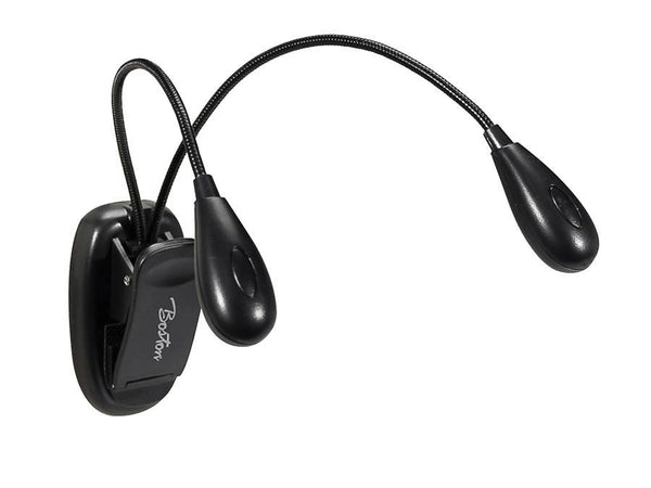Music stand dual twin LED lights, with clamp mount and USB power cable, black, 3xAAA 1.5v included