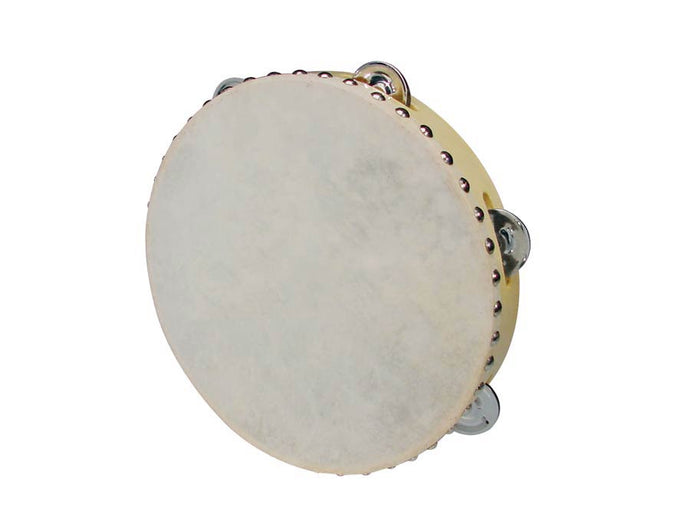 Tambourine, rawhide skin, wood, 10"", 6 zils