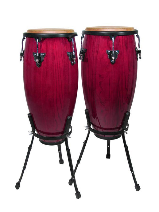 Conga set, 10""+11"", hardwood, with basket style stand, winered