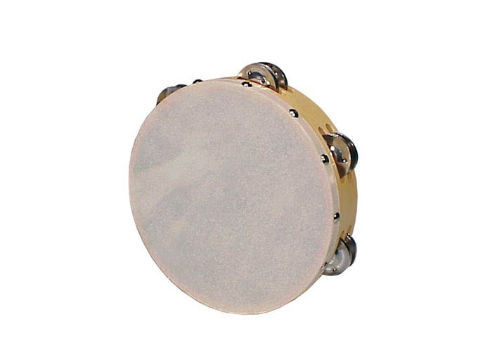 Tambourine, rawhide skin, wood, 6"", 4 zils