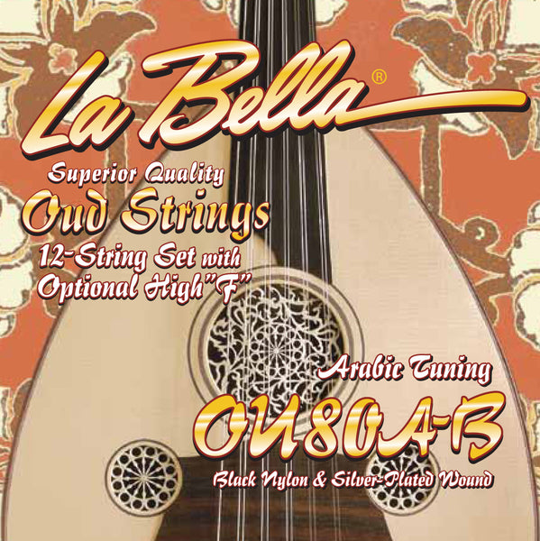 La Bella OU80A-B Oud Set Arabic Tuning, 12-Strings Black Nylon & Silver-Plated Wound on Nylon