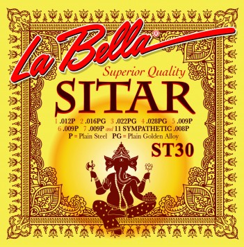 La Bella ST30 Sitar Plain Steel & Plain Golden Alloy with Loop-Ends