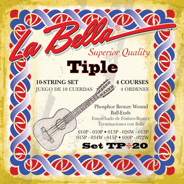 La Bella TP20 Tiple (American) 10-String Set, 4 Courses Plain Steel & Phosphor Bronze Wound - Ball-Ends