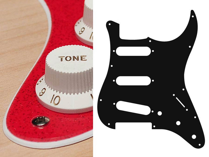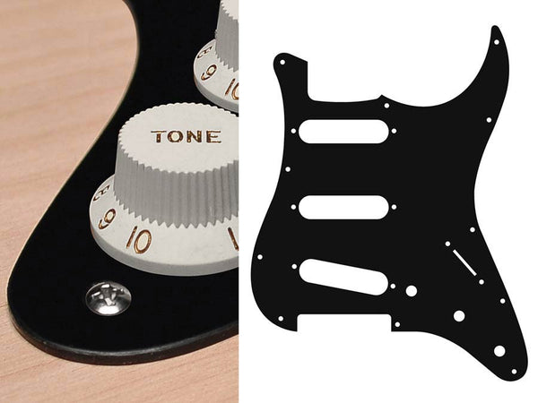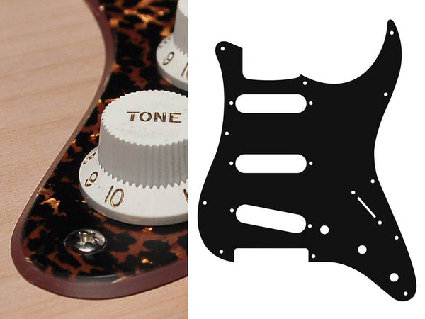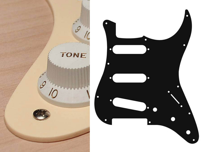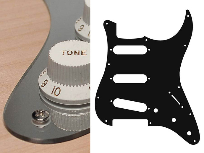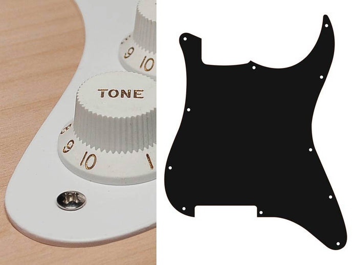 Pickguard, Stallion, standard, SSS, 3 pot holes, 3-5 switch, 1 ply, black