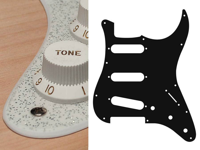 Pickguard, Stallion, standard, SSS, 3 pot holes, 3-5 switch, 2 ply, sparkling silver