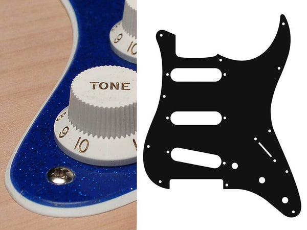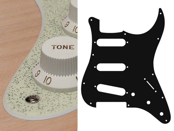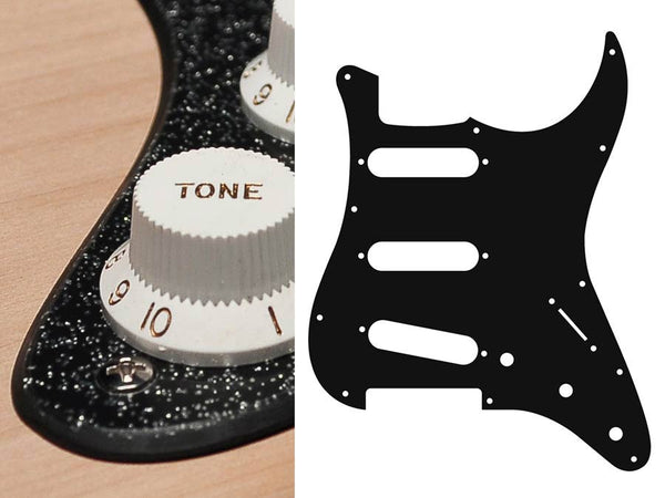 Pickguard, Stallion, standard, SSS, 3 pot holes, 3-5 switch, 2 ply, sparkling black