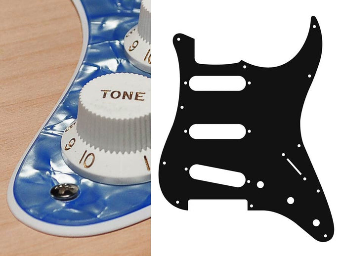Pickguard, Stallion, standard, SSS, 3 pot holes, 3-5 switch, 2 ply, pearl ocean blue