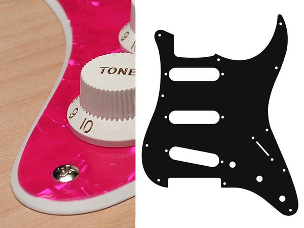Pickguard, Stallion, standard, SSS, 3 pot holes, 3-5 switch, 2 ply, pearl pink