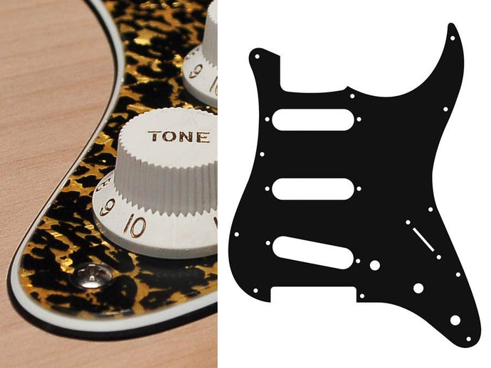 Pickguard, Stallion, standard, SSS, 3 pot holes, 3-5 switch, 3 ply, black