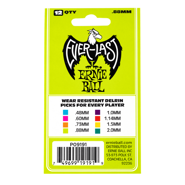 Ernie Ball Everlast Picks 12-Pack Green .88mm
