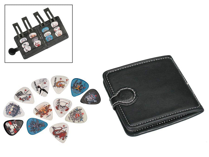 Pick pouch, black, PVC, with 12 delrin picks, gold print