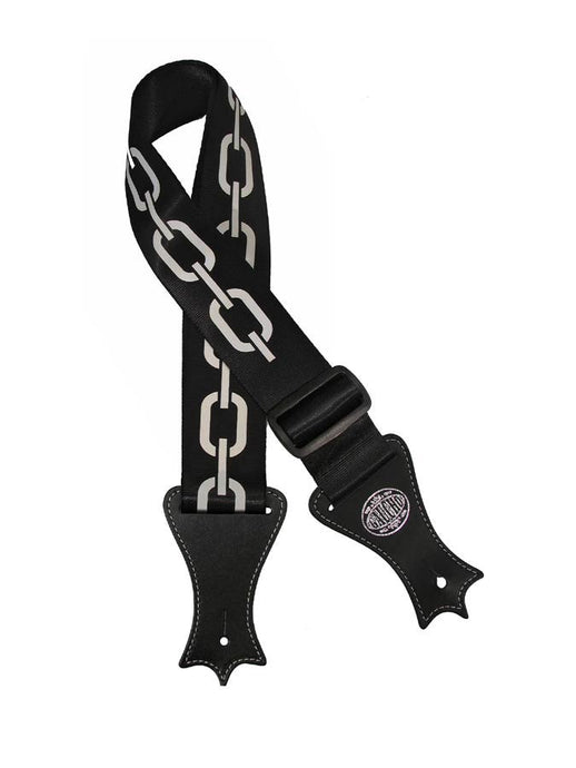 Icon Series Guitar strap, deluxe black nylon with leather slips, chains print