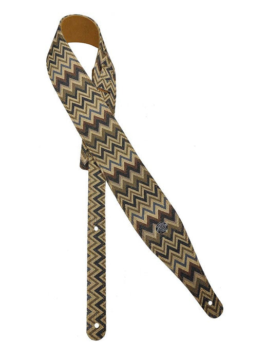 Peace Series Guitar strap, linen colourfull design with suede back, jeans zigzag