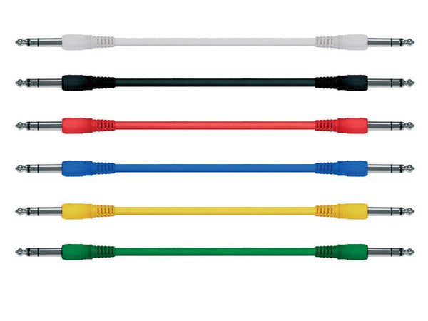 Patch cables, stereo, 6-pack, 6 colors, jacks moulded, 0.30 meter