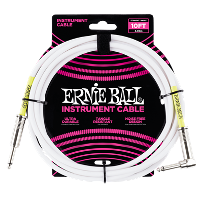 Ernie Ball Instrument Cable Straight Angled White 10Ft