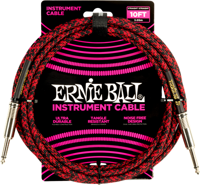 Ernie Ball 10Ft Braided Straight-Straight Red Black