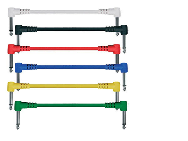 Patch cables, mono, 6-pack, 6 colors, moulded angled jacks, 0.15 meter