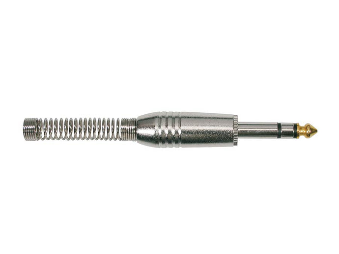 Jack plug, 6,3mm, 3-pole, nickel, spring 7,3mm