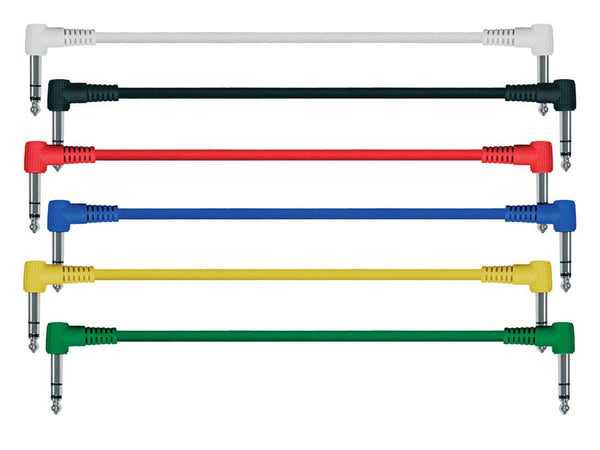 Patch cables, stereo, 6-pack, 6 colors, moulded angled jacks, 0.30 meter