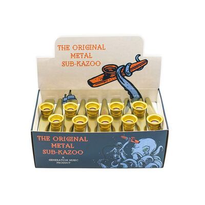 bugle trumpet, plastic, length 50cm, yellow body and green m
